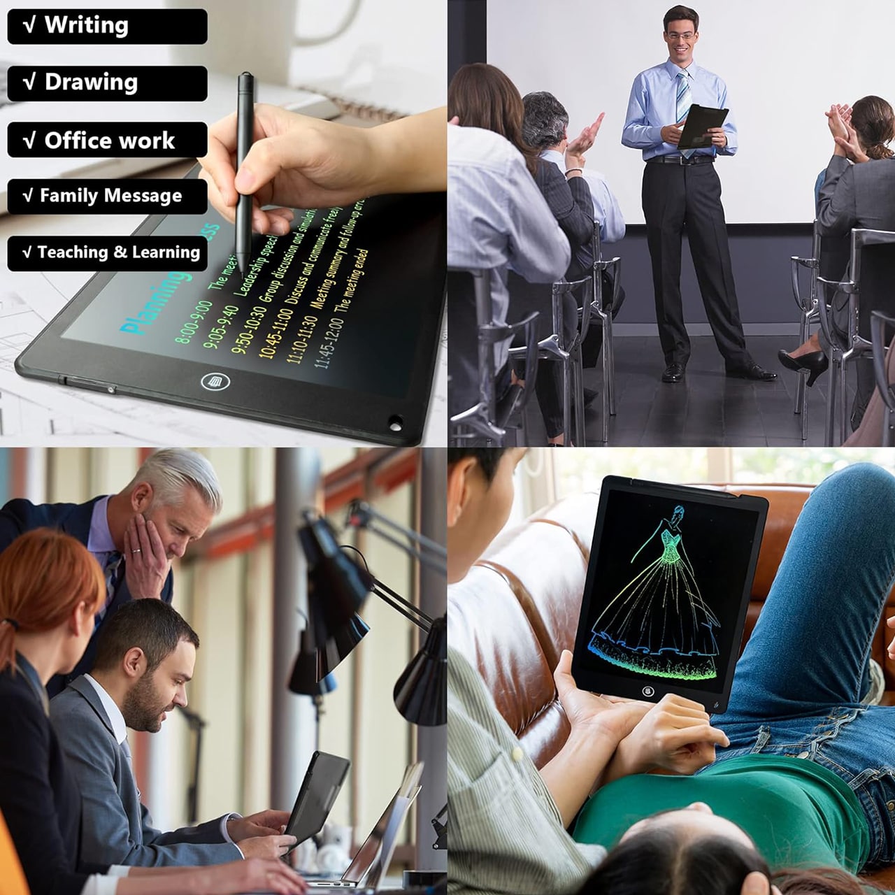 Cserélj le egy halom papírt egy elektronikus táblára, ami mindig kéznél van jegyzetekhez, rajzokhoz, emlékeztetőkhöz vagy játékokhoz! A gyerekek is imádni fogják a színes munkafüzeteket, hogy gyakorolják és fejlesszék betű-, szám- és rajzkészségeiket. A legjobb az egészben, hogy a füzetek újrahasználhatóak, mivel a varázstoll automatikusan törli!