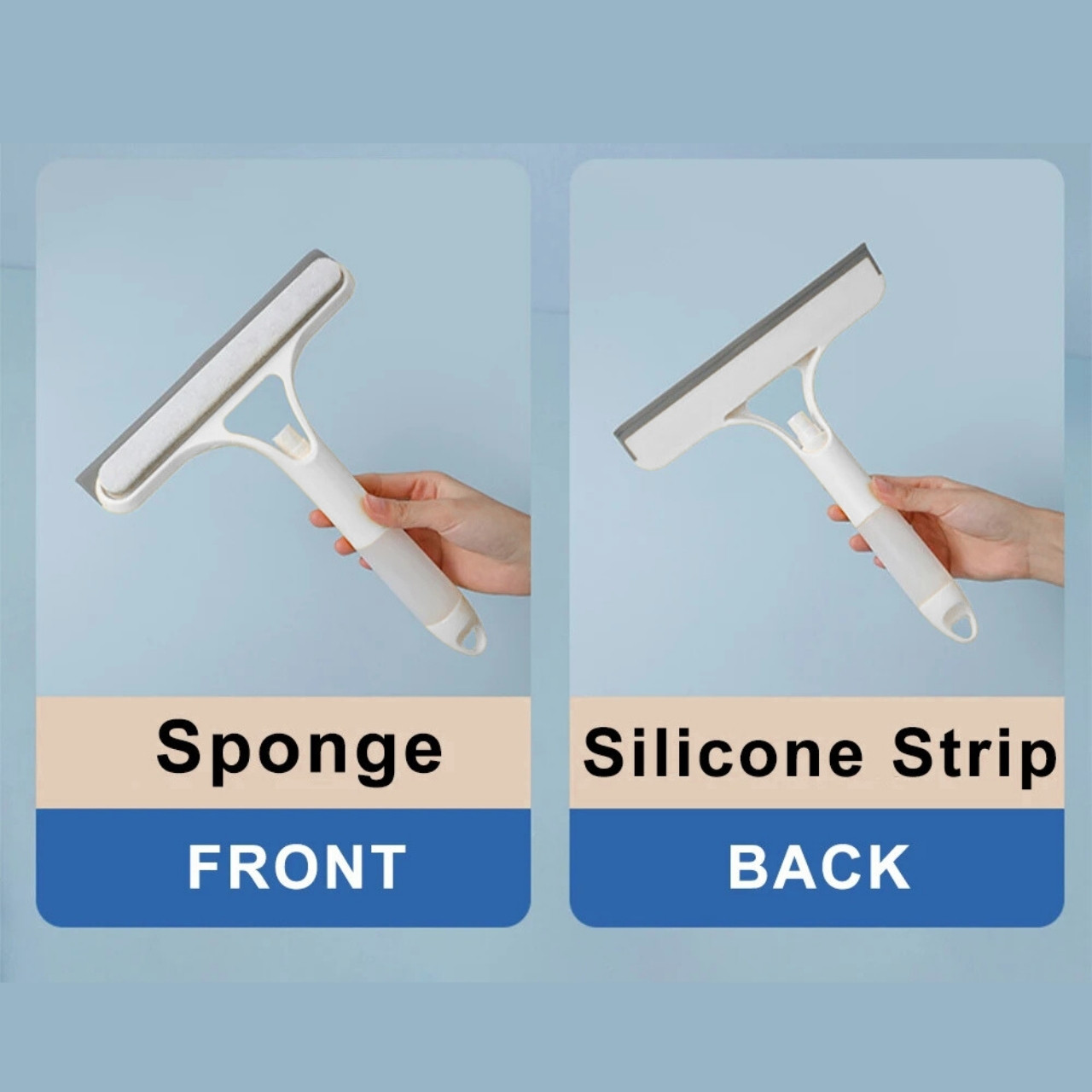 - Kétirányú használat – elülső oldal puha szivaccsal a szennyeződések eltávolításához, hátsó oldal szilikonnal a hibátlan szárításhoz